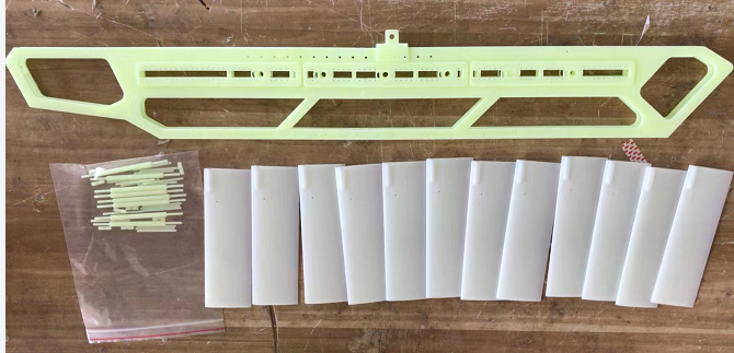 但是采用3D打印,能夠打印復(fù)雜的結(jié)構(gòu),能夠根據(jù)模型把模型結(jié)構(gòu)整體打印出來(lái),而且成本也沒(méi)有增加。該模型船舶骨架部分需要承受部分力,所以采用高韌性樹(shù)脂打印,水翼部分不承受力,所以采用普通樹(shù)脂打印的,這樣能大大降低打印成本。
