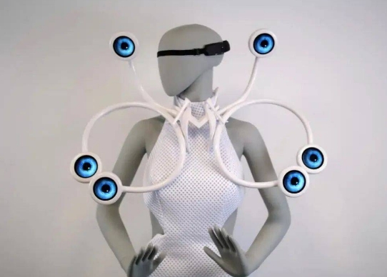 作為一款嵌入屏幕的、可實時大腦監(jiān)控的3D打印連衣裙,在穿衣者與周圍環(huán)境之間創(chuàng)造了一種以技術(shù)為媒介的對話。時尚成為一種新型的相互聯(lián)系,由穿著者大腦的潛意識信號控制。這些信號是使用新型尖端腦電圖傳感器拾取的,該傳感器形成了可穿戴腦機接口。該界面使用機器學習來確定佩戴者的腦力負荷。然后,工作量會實時反映在裙子雕刻領(lǐng)口的六個圓形顯示屏上。