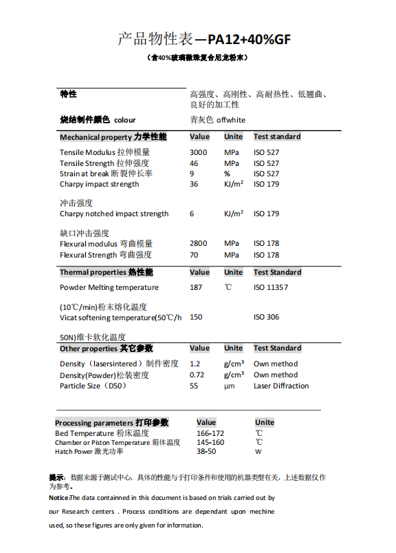 該材料剛性好,耐熱性能好,成型過程穩(wěn)定,尺寸穩(wěn)定性好,適合功能件驗證,小規(guī)模生產(chǎn),替代CNC和注塑件,特別適合汽車,家用電器,手板等應(yīng)用。